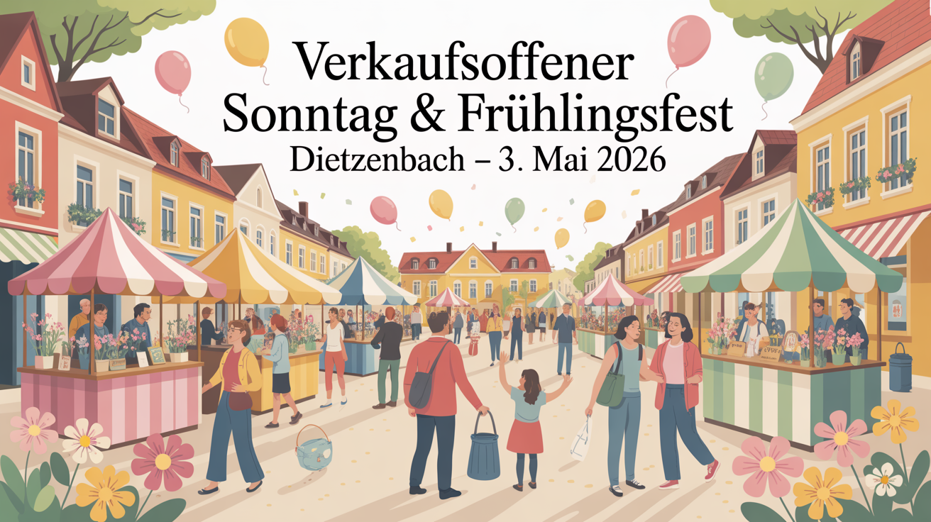 Am 22. März 2026 findet in der Altstadt Dietzenbach ein verkaufsoffener Sonntag statt. Besucherinnen und Besucher können gemütlich durch die geöffneten Geschäfte bummeln. Das detaillierte Programm wird noch bekannt gegeben.